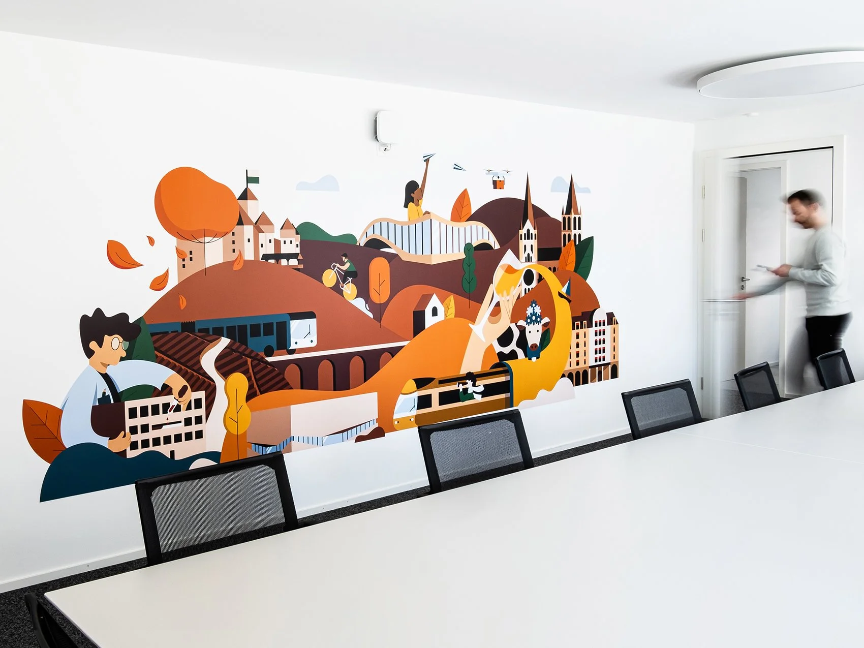 Des fresques murales uniques qui subliment vos espaces. Je conçois des créations sur mesure, peintes ou imprimées, pour transformer vos murs en véritables œuvres d'art et offrir à votre lieu une identité visuelle forte, captivante et mémorable.