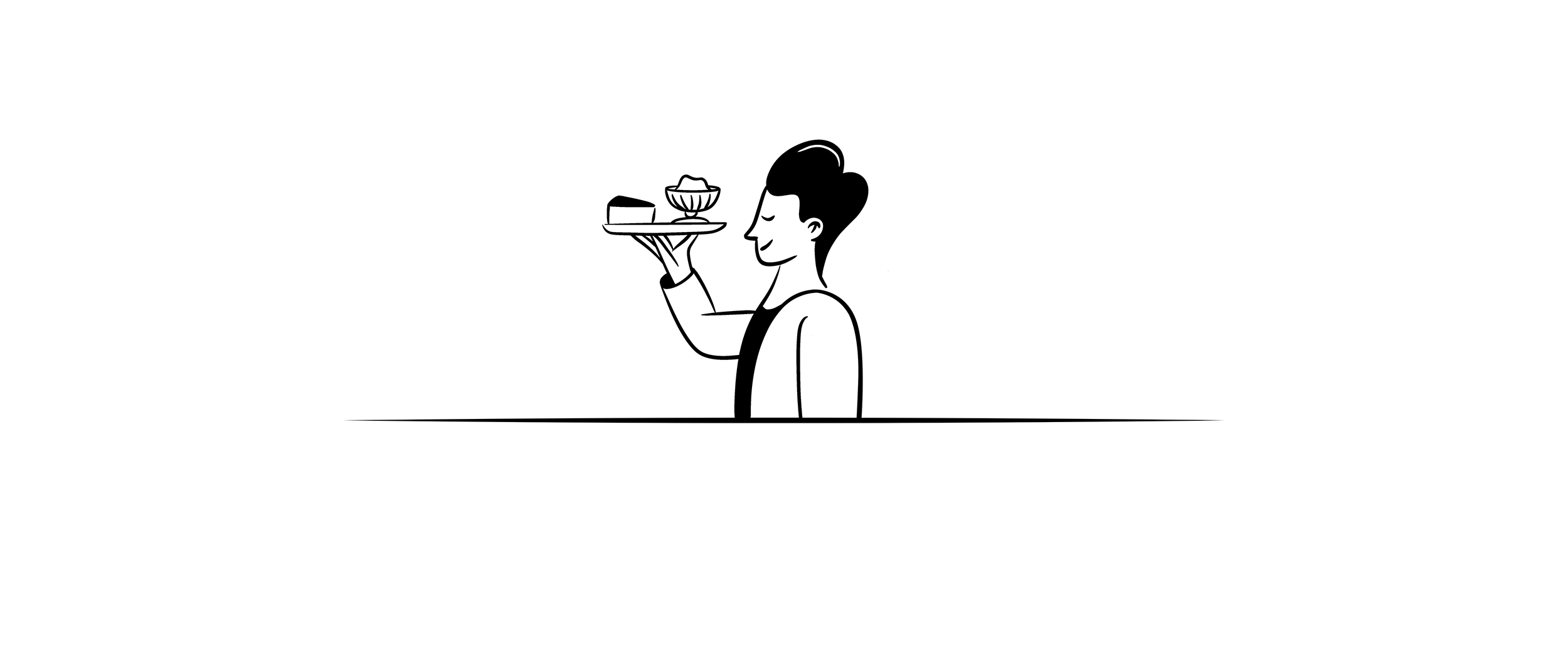 Chaque ambiance a été illustrée sur l’un des quatre murs disponibles. Pour créer un lien visuel entre eux, j’ai imaginé une ligne centrale continue représentant tantôt une table, tantôt un comptoir qui structure la composition tout en allégeant visuellement l’ensemble.