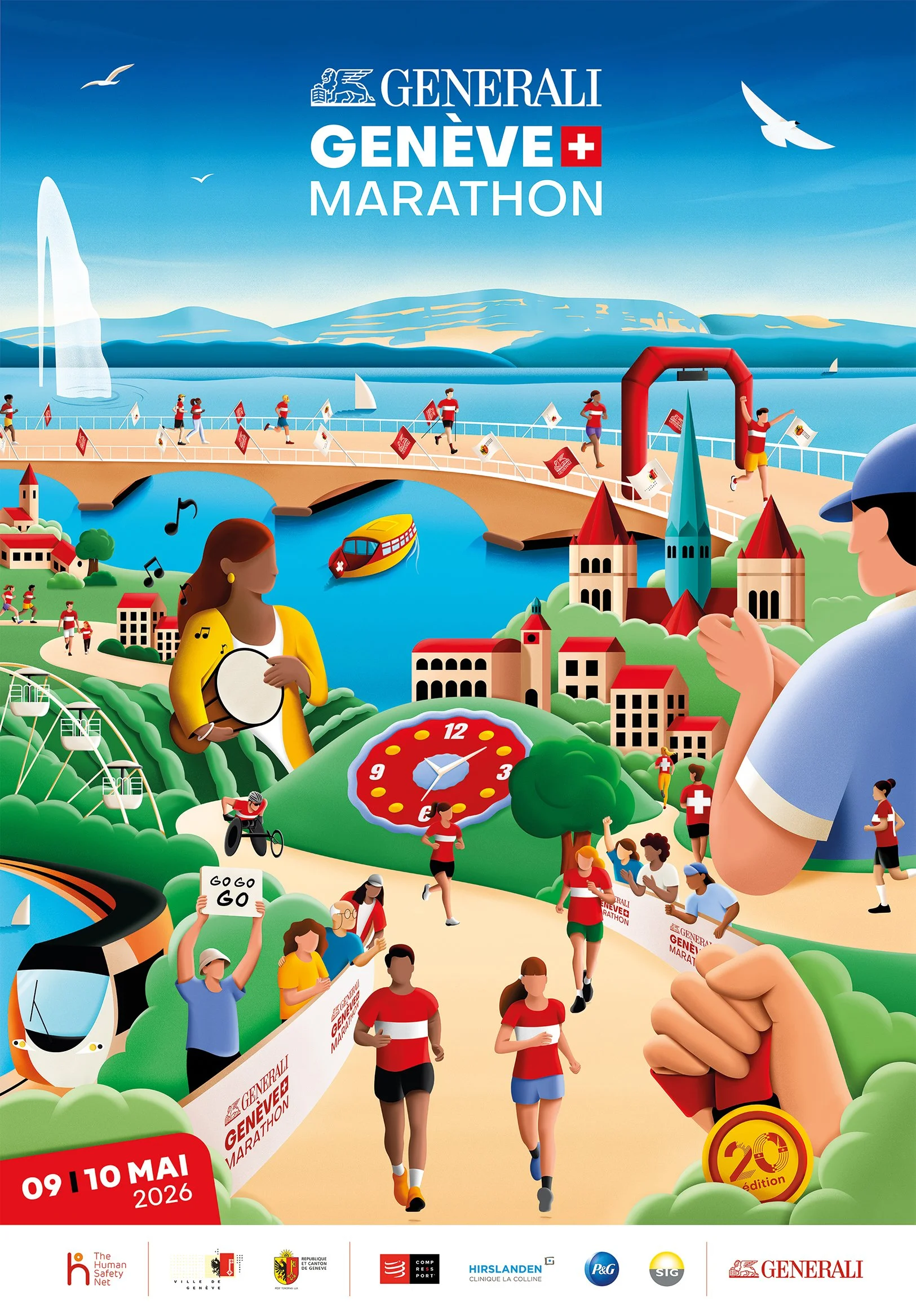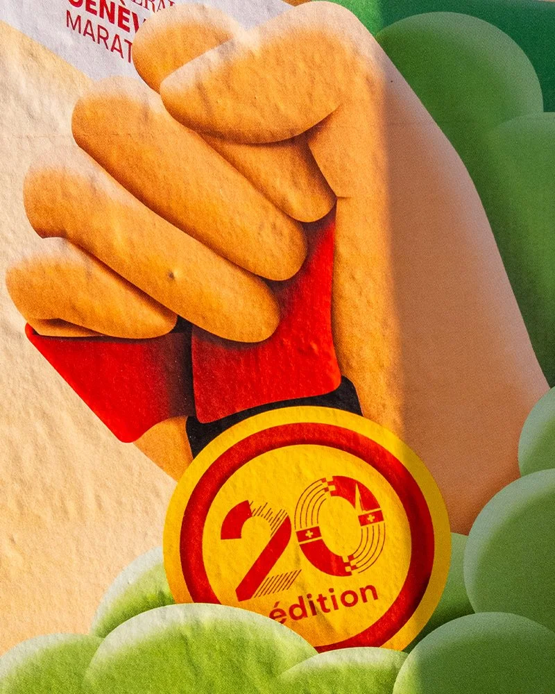 Le Generali Genève Marathon m’a confié la réalisation de l’affiche de l’événement à l’occasion de sa 20ᵉ édition. L’objectif était de représenter Genève et les différents parcours empruntés par les coureurs, d’illustrer les divers formats de courses proposés, le tout dans un univers genevois vivant et animé.